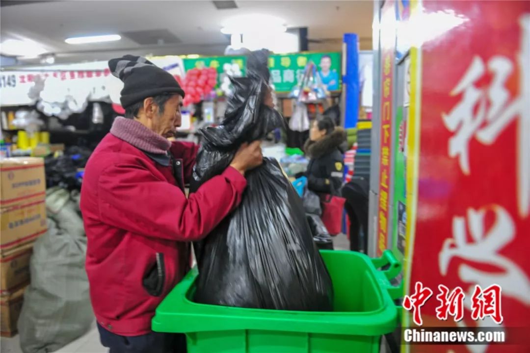趙永久幫助别人(rén)清理(lǐ)垃圾。 李晛 攝